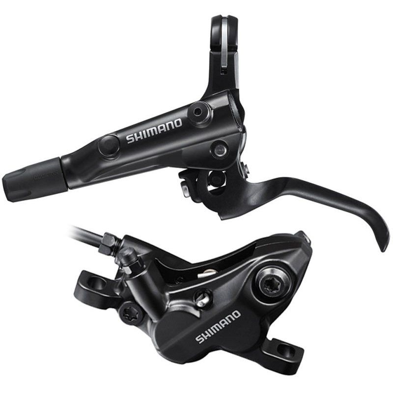 Shimano MT501-E - 4-поршневе гідравлічне дискове гальмо з ергономічним двопальцевим гальмівним важелем BL-MT501 і супортом BR-MT520. Гальмівний важіль забезпечує високопотужний SERVO WAVE для гірських велосипедів і сумісність із I-spec II.
