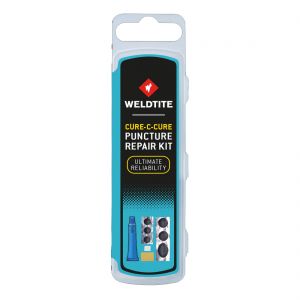Weldtite Cure-C-Cure Puncture Repair Kit - це покращений набір, який дає змогу ремонтувати не лише велосипедні камери, а й клеїти покришки. Складається зі спеціальних латок та клею, що реагують між собою, створюючи міцне та довговічне з'єднання. Також до набору входить наждачний папір для обробки камери перед ремонтом.